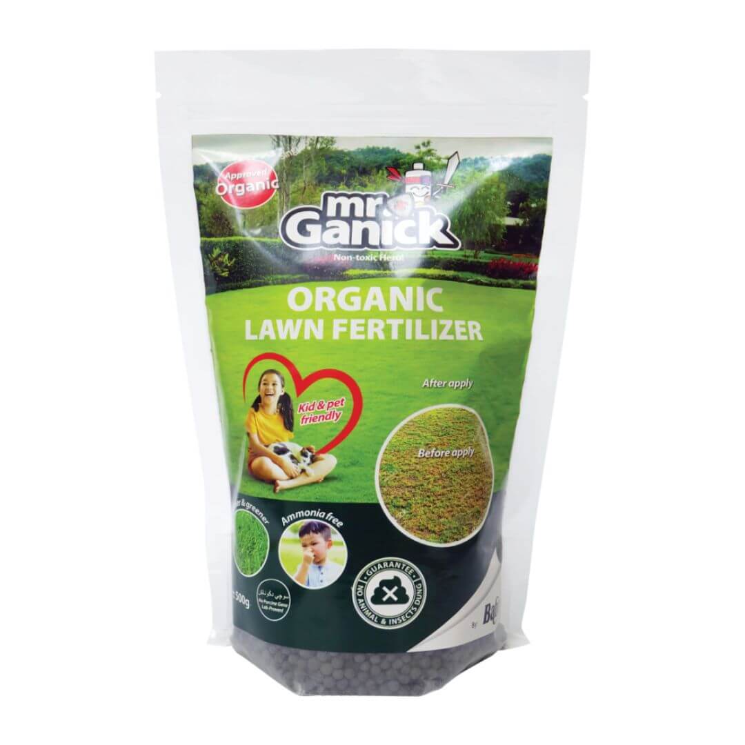 - Apply Mr Ganick Organic Lawn Fertilizer for restoration, using 500gm per 100ft2, once a month.